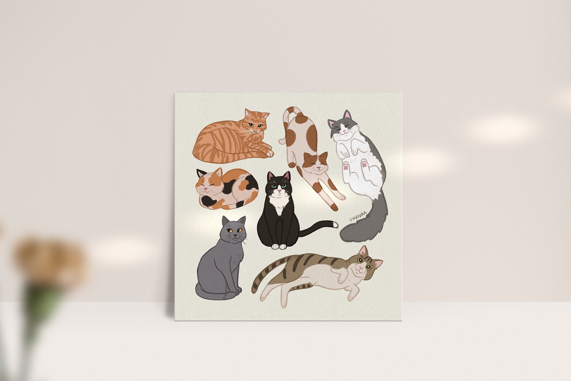 Cute Cat Hand Drawn Illustration and Art for Cat Lovers - Adorable Cats in Various Poses - Cat Decor Gift - Cat Art