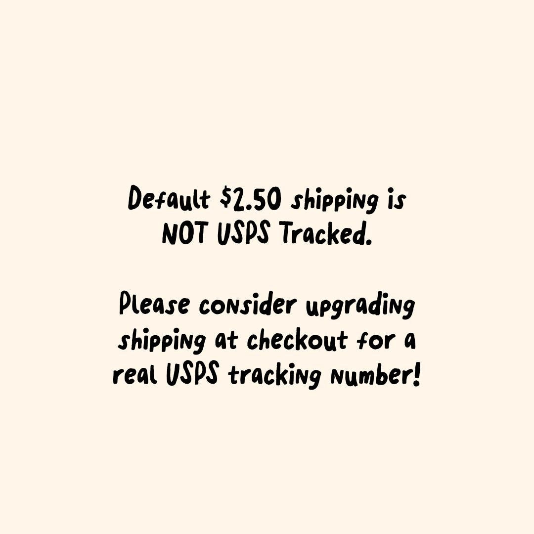 Stickers are shipped in a letter with a stamp with estimated tracking that Etsy provides. Most orders arrive with no issues, but consider upgrading to USPS tracking if you'd like total peace of mind!