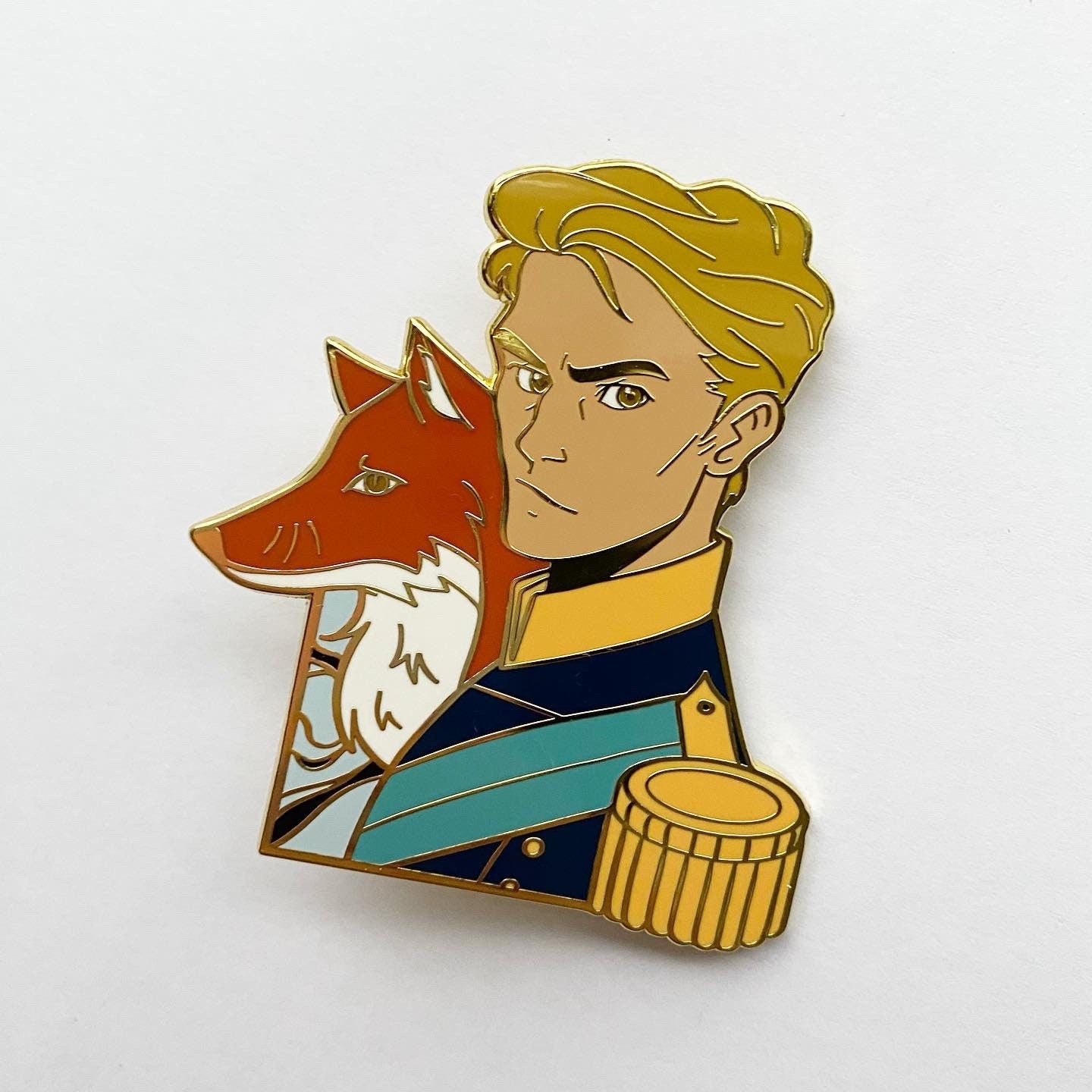A hard enamel pin inspired by Nikolai Lantsov, illustrated by me!